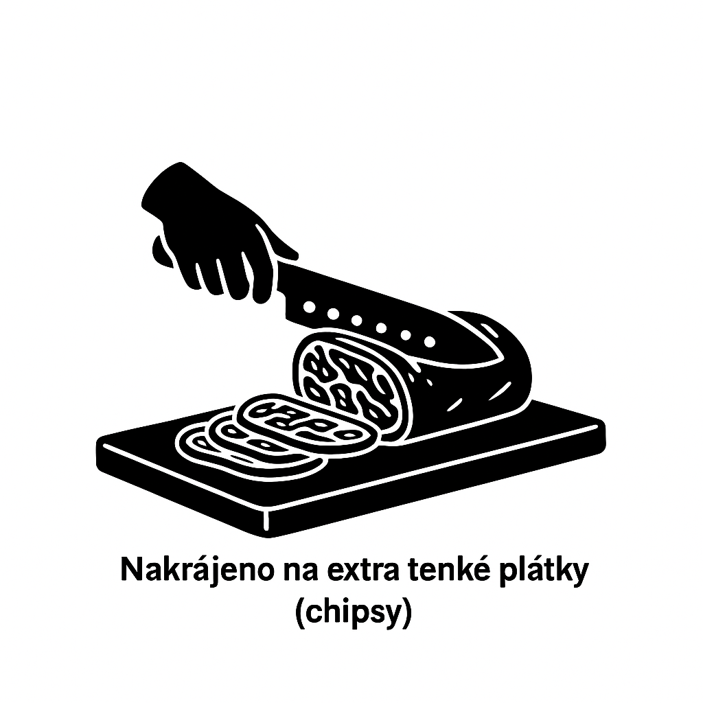 Specializujeme se na výrobu výjimečně křehkého sušeného masa, krájeného na extra tenké plátky a vysušeného k dokonalé křupavosti.